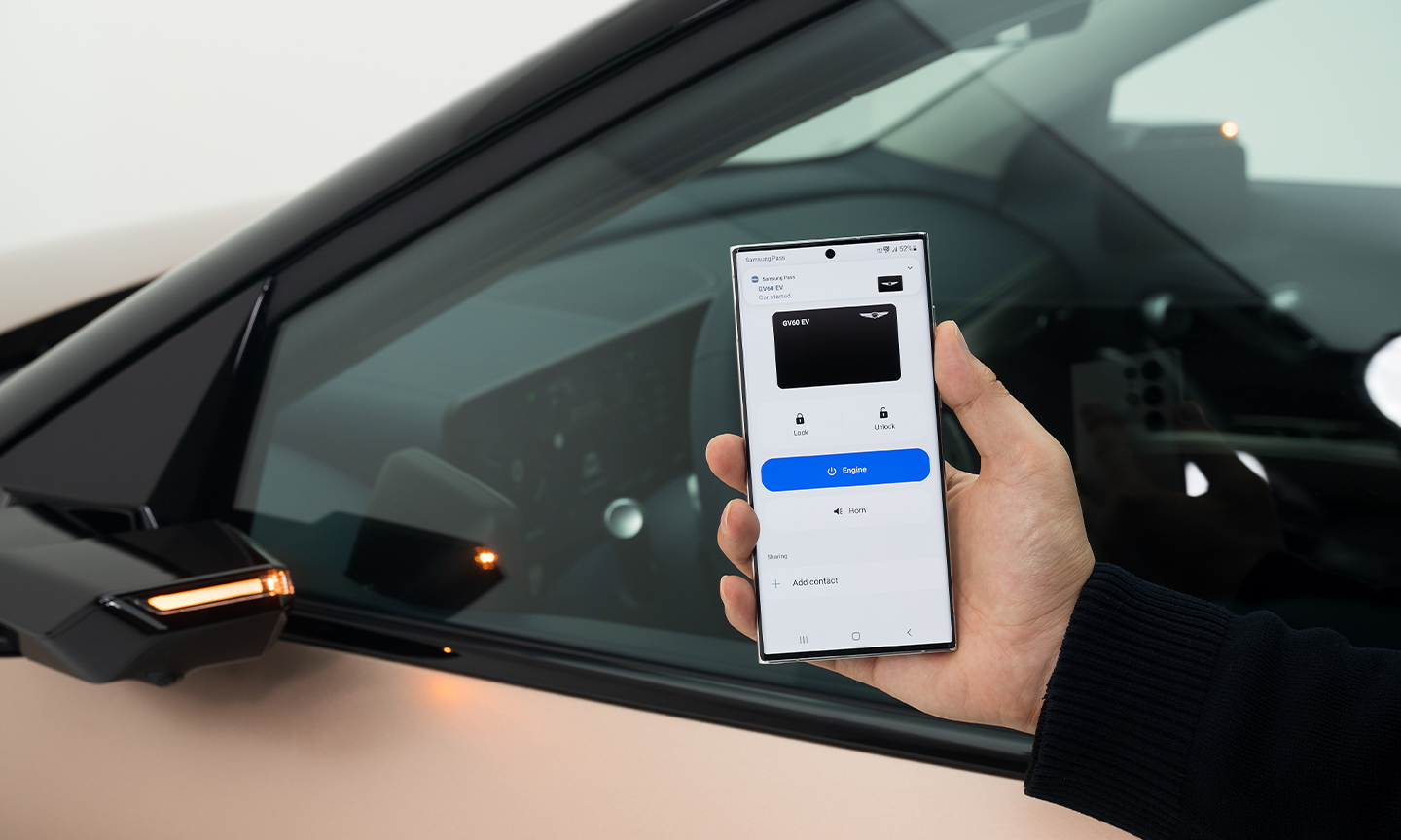 UWB is a wireless technology that allows your smartphone to connect and communicate directly with your car. Once a digital key is registered, the GV60 can identify authorized Galaxy devices and unlock the doors as they approach.