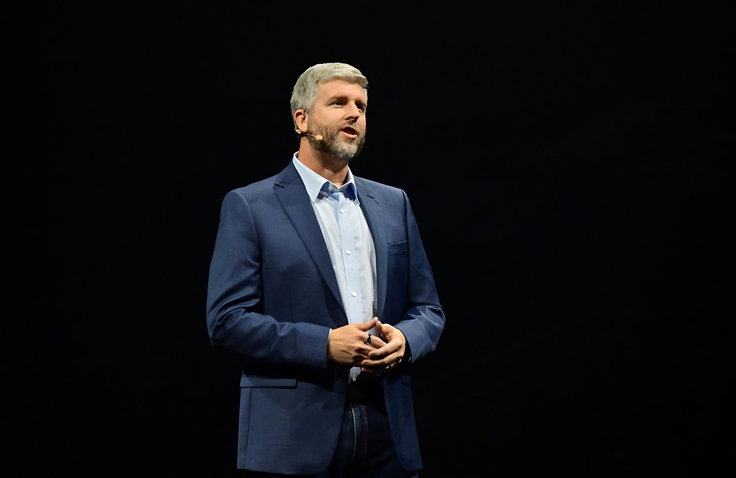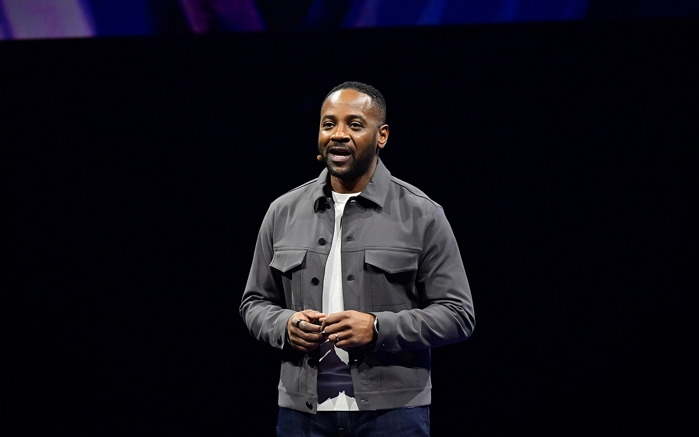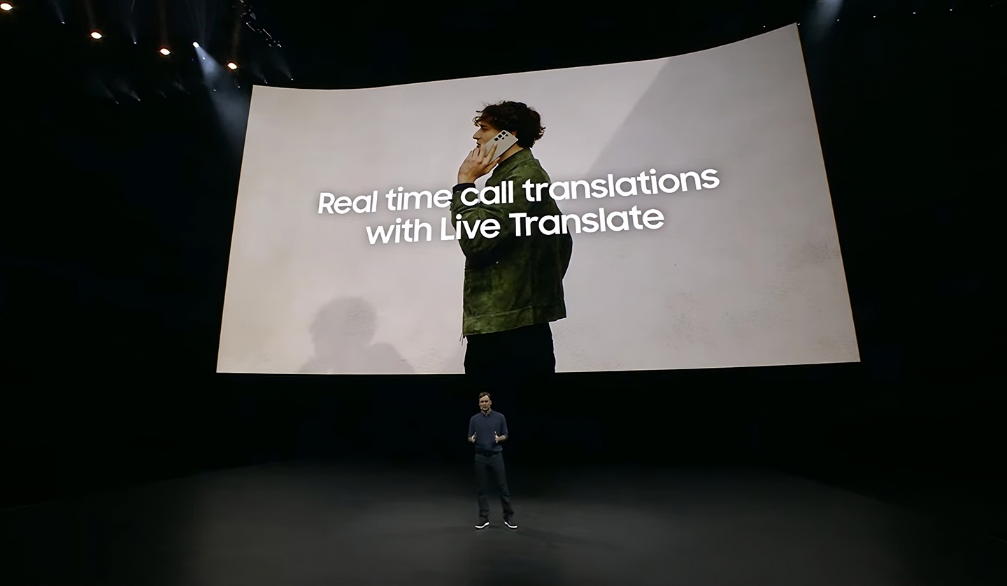 Drew Blackard, Vice President of Mobile Product Management at Samsung Electronics America, introduces a new range of communication features for the Galaxy S24 series via live demonstration.