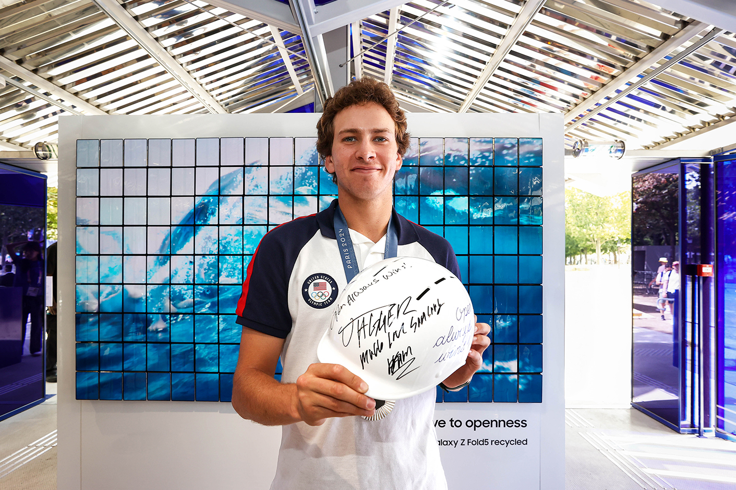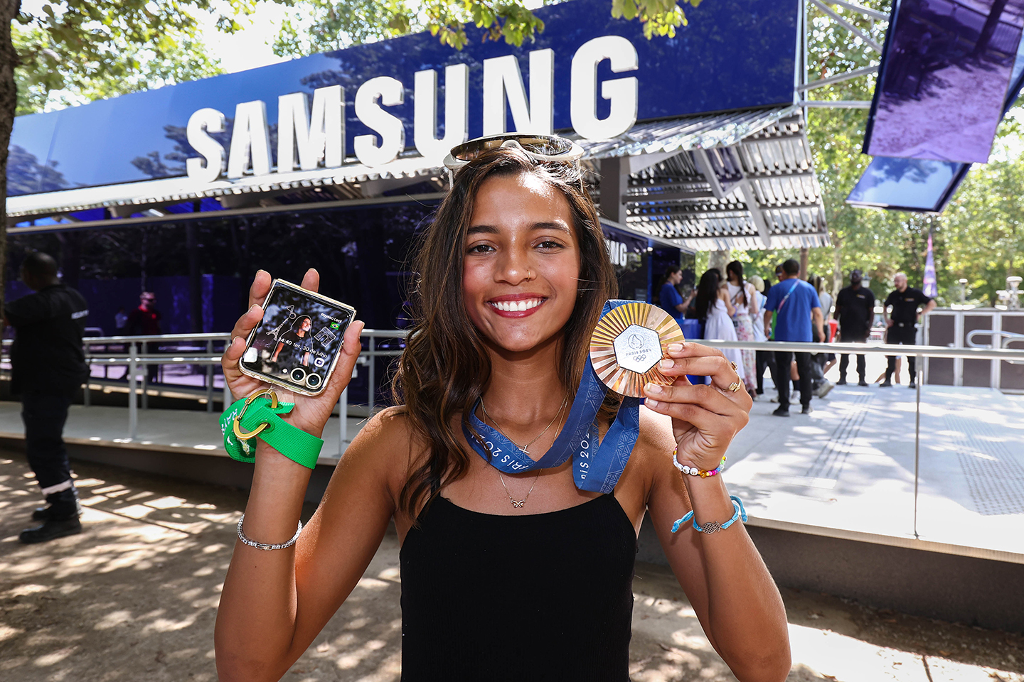 Fresh from their medal-winning performances at the Olympic Games Paris 2024, Team Samsung Galaxy athletes Rayssa Leal (Skateboarding, Brazil) and Jagger Eaton (Skateboarding, USA) surprised fans at the Olympic™ rendezvous @ Samsung | Square Marigny. Fans gathered as the athletes explored the space, posed for pictures and left their mark with a signed board and helmet — now on display at the space throughout Paris 2024.