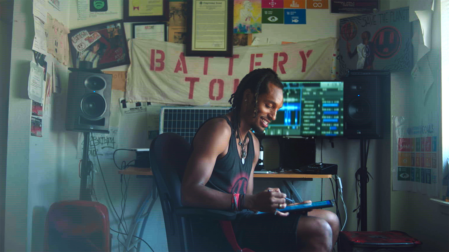 He decided to combine his passions: He’d create impact through music. Starting out, AY held free concerts at local parks and on street corners, but he struggled to break through to bigger opportunities. In 2012, he decided to self-fund a tour in hopes of reaching a larger audience with his message of helping others and the planet. “I obsessed over how to power a concert anywhere in an environmentally friendly way,” he recalls. “I discovered that energy is the base resource.”