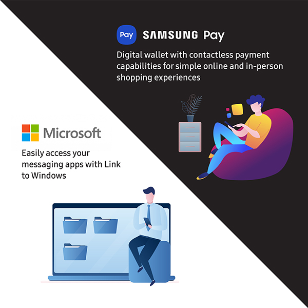 Having immediate access to Microsoft Office and its suite of apps can help you stay on top of things when working or learning remotely. Samsung’s long-term partnership with Microsoft gives you access to the tools you need to manage work and life, such as scanning and signing PDFs and converting pictures to an Excel table. With the Link to Windows feature and the Your Phone companion app, you can also access photos in your gallery, messages, notifications and other functions on your PC from your Galaxy device, keeping you in the flow without the need to switch devices.