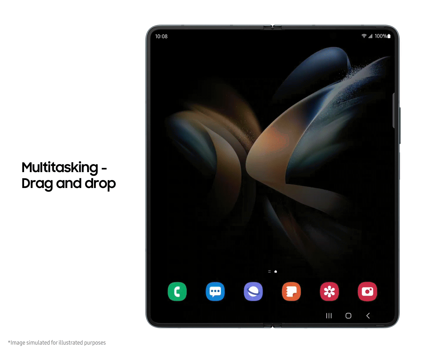 With drag-and-drop support straight from the Taskbar, multitasking5 on Galaxy Z Fold is easier than ever. Dragging an app to the edge now opens split view, while dragging it into the center will open it in pop-up view, giving you multiple ways to see your apps and easy switching between views.