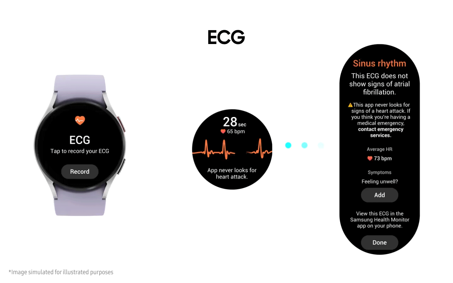 11 Due to market restrictions in obtaining approval/registration as a medical device, Blood pressure and ECG only works on watches and smartphones purchased in the markets where service is currently available (however, service may be restricted when users travel to non-service countries). Check out https://www.samsung.com/apps/samsung-health-monitor for more information and latest update on service markets.