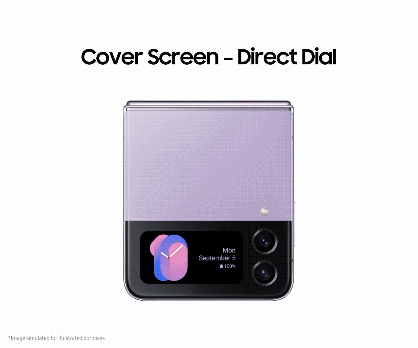 An upgrade to Quick Shot on the Galaxy Z Flip series now lets you see the preview and take photos in their true ratio on the Cover Screen, while allowing you to access Portrait Mode to make every moment photogenic. You can also switch seamlessly from Quick Shot to Flex mode8 while taking photos or recording video, letting you switch between angles without interrupting your shot for a truly hands-free experience.