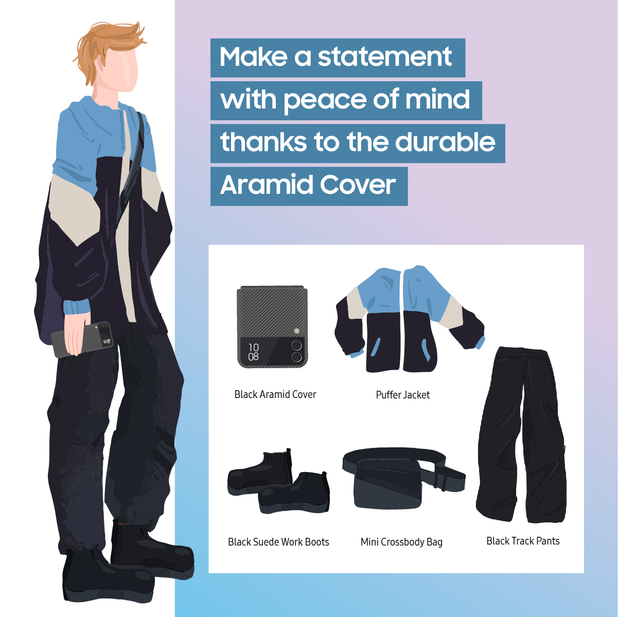 Take a look at some of the ways you can upgrade your #OOTD and keep up with the trends this fall/winter with the Galaxy Z Flip3 5G’s accessories.