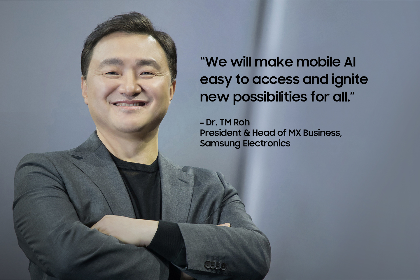 When integrated into phones, AI, is to put it simply, a revolution. This is a new era for mobile experiences and Samsung Galaxy has a leading role to play in it. Mobile devices will become the primary access point for AI, and Samsung Galaxy – with our broad and comprehensive product portfolio, heritage of innovation, and philosophy of open collaboration – is in a great position to accelerate its global expansion. We will make mobile AI easy to access and ignite new possibilities for all.