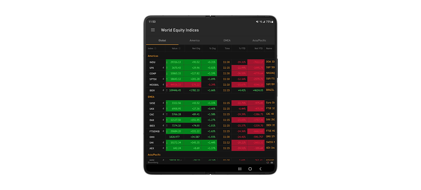 According to a recent survey, the Bloomberg Professional app5 is the most used financial services app by investment professionals, such as traders, analysts and portfolio managers6. It takes advantage of the Galaxy Z Fold’s unique form factor to enable financial professionals to access Bloomberg’s market data, analytics, news, and communications on the go in a more intuitive and immersive way, while preserving the user experience and functionality with which they are familiar. On Samsung Galaxy Z Fold4, the Bloomberg Professional app’s adaptive layout provides for easy continuity and multitasking on the go. Users can effortlessly switch from the cover screen, ideal for quick Instant Bloomberg (IB) conversations, to the large screen that makes it easier to read news stories, monitoring real-time market data, browse portfolios or perform chart analysis. This allows financial professionals to do familiar work in an enhanced way on their foldable device.
