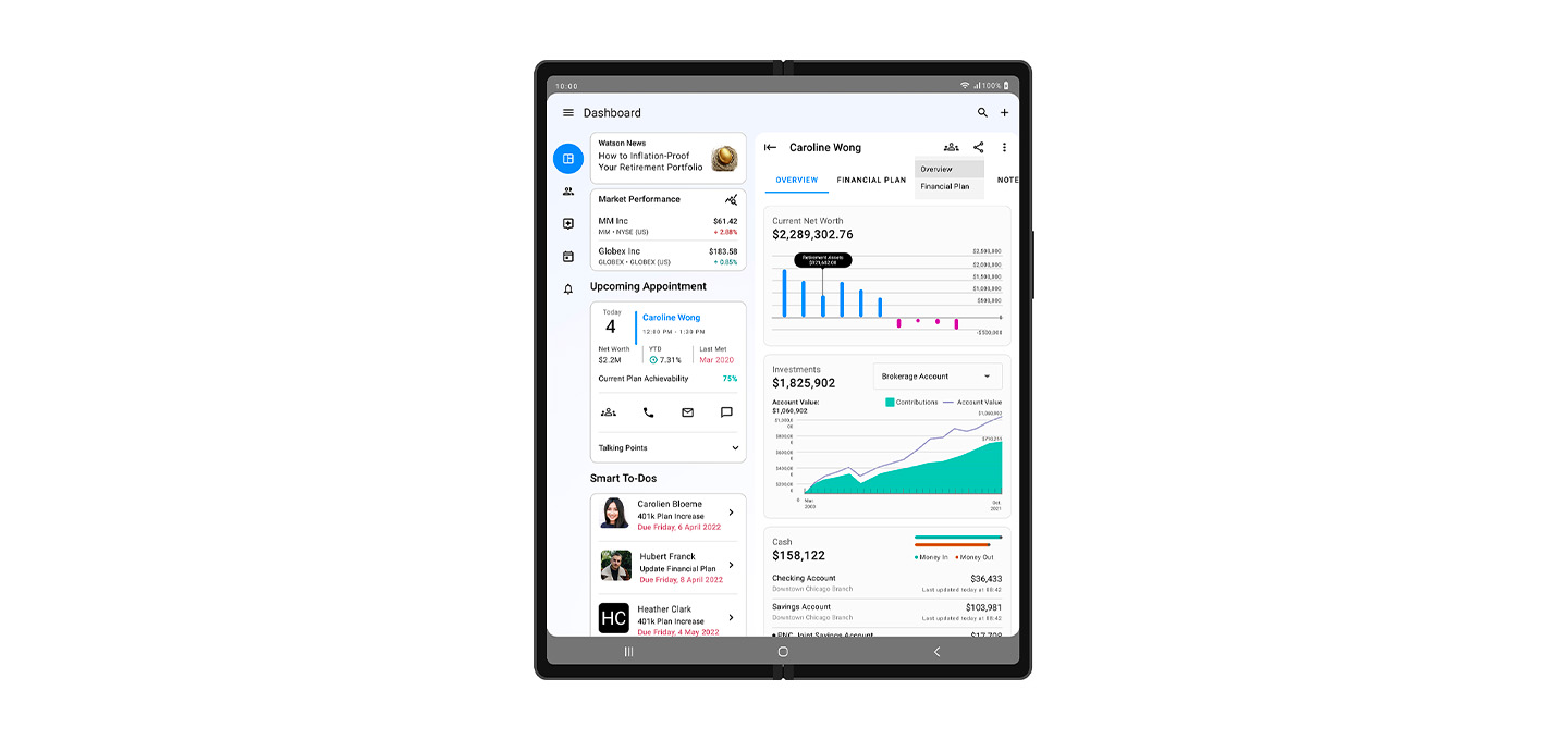 As companies shift towards work-from-anywhere policies, they are looking to technology for new ways to maximize productivity. Foldables have particularly attracted the financial services industry, where 74%3 of a sample group of financial advisors say staying connected via mobile apps is important or critical.